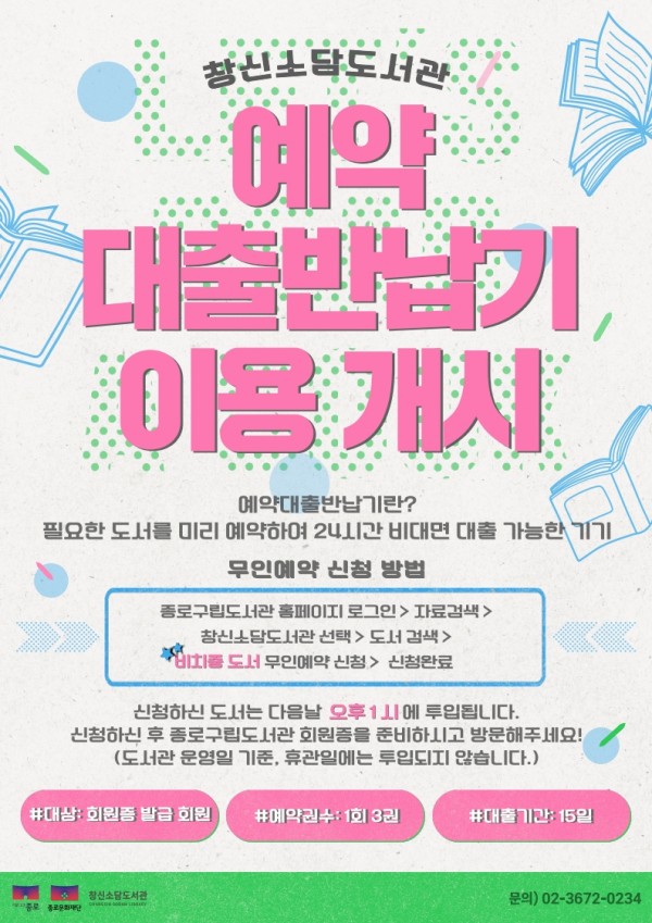 - 대상 : 종로구립도서관 회원증 발급 회원