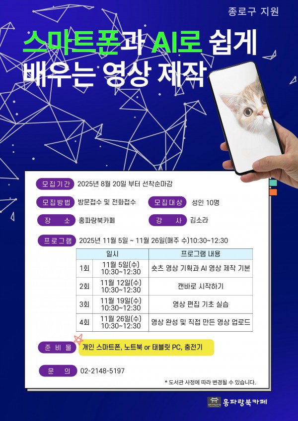 스마트폰과 AI로 쉽게 배우는 영상 제작 ( 홍파랑 북카페 )