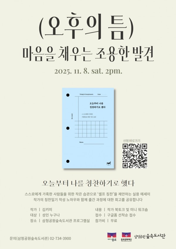 오후의 틈 <오늘부터 나를 칭찬하기로 했다> 작가와의 만남 ( 삼청공원 숲속도서관 )