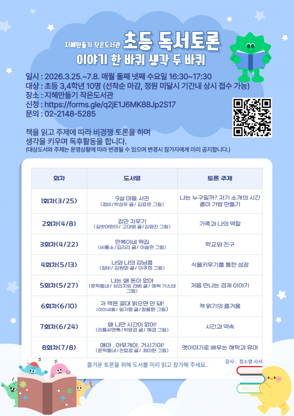 초등 독서토론 '이야기 한 바퀴 생각 두 바퀴' ( 지혜만들기 작은도서관 )