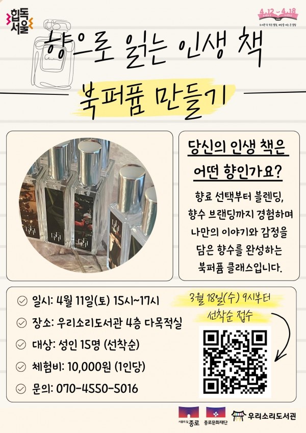 향으로 읽는 인생 책: 북퍼퓸 만들기 ( 우리소리도서관 )