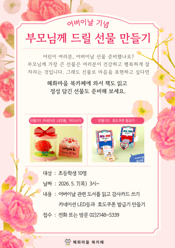 어버이날 선물 만들기 ( 혜화마을 북카페 )